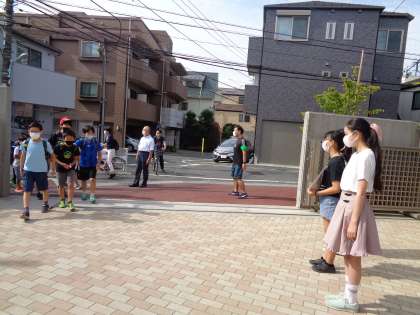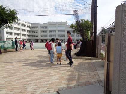 元気な挨拶に周りが明るくなりました。顔見知りの子供たちが来ると手を振って挨拶してくれました。
