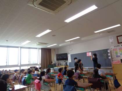 1年生は「お姉さんの声がすてきでした。」「おもしろかったです。」など感想を発表しました。
