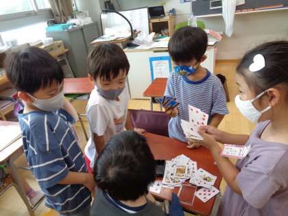 トランプ、折り紙、ゲーム・・・楽しく遊んでいました。