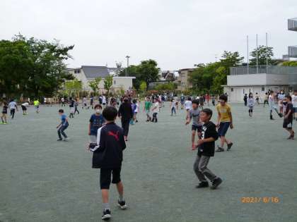 水曜日は、「みんな1グラ」です。全学年が第1校庭で遊びます。