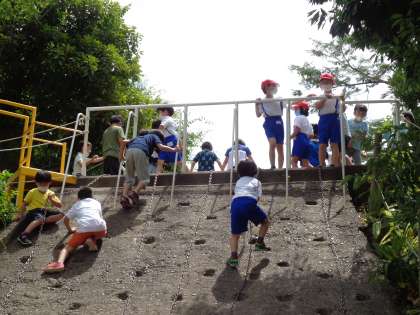 休み時間には、雨がやんで遊ぶことができました。