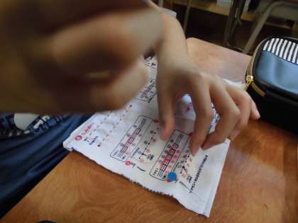 5年生家庭科です。本日で、いろいろな縫い方の全てを習いました。本返し縫い、半返し縫い、かがり縫い、どんなときにその縫い方を使うのかも考えながら、練習しました。