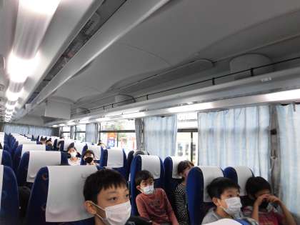 バスの中では、ビデオを見ながら落ち着いて過ごしました。