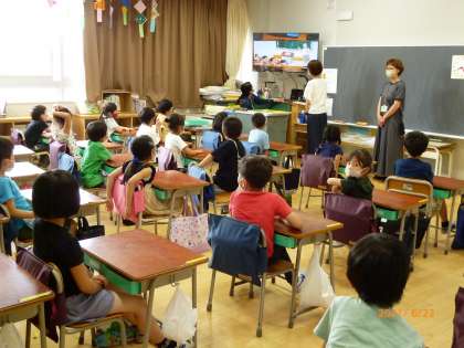 コロナウイルス感染症対策のため、子供たちは自席から聞いていましたが、みんな静かに、本の世界に引き込まれたかのように集中していました。