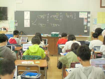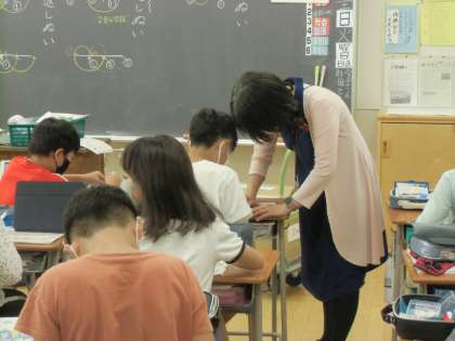 5年生の家庭科です。縫い方の学習をしていました。