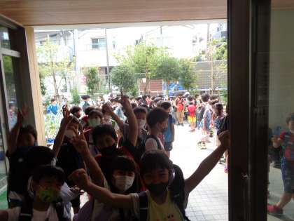 遠足に行く2年生がいつもより少し早めに登校していました。