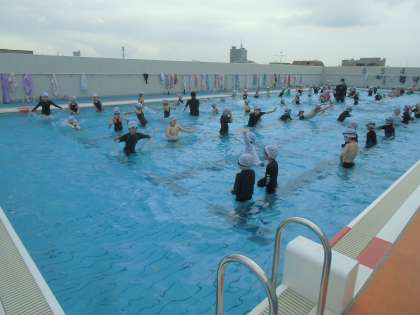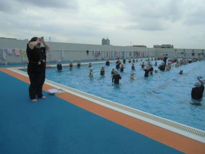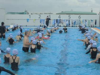 曇っていて少し肌寒い感じでしたが、みんな水の中で楽しく活動し、水に親しむことができました。