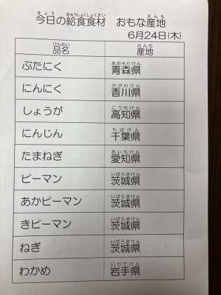 6月24日 今日の給食
