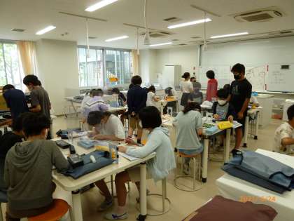 6年生の家庭科の授業です。夏のすずしい住まい方の工夫の1つに、通風があります。自分の家の間取りを書き、窓やドアを開けたらどこに「風の通り道」があるかを確認しました。一週間、実際に家でやってみてエアコンだけでなく、すずしい住まい方の工夫につなげていってほしいです。