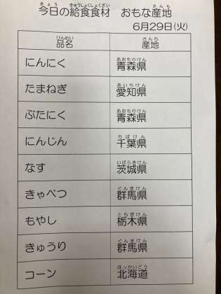 6月29日 今日の給食