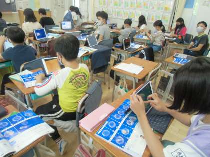 教科書やタブレットを見たり、顕微鏡で実際の卵を観察したりします。手軽に見られる映像と、現実にそこにある実物の良さを、その時々に応じて使い分けて学習を進めています。