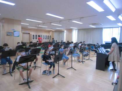 「少年時代」を歌っていました。コロナウイルス感染症対策で、思い切り歌うことはまだできませんが、今はできる範囲の中で音楽の楽しさを学習してほしいと思います。