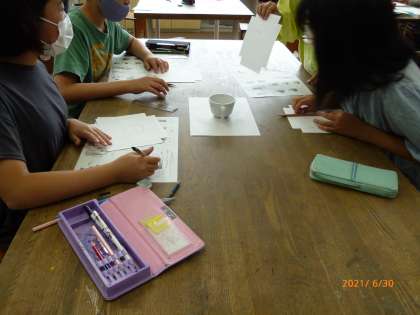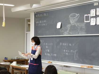 6年生の図工の授業で、鉛筆を使い、コーヒーカップを描きました。
