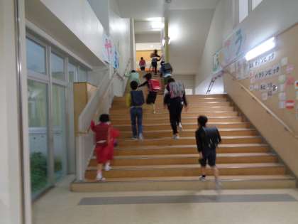 濡れたランドセルを先生が拭いてくれました。