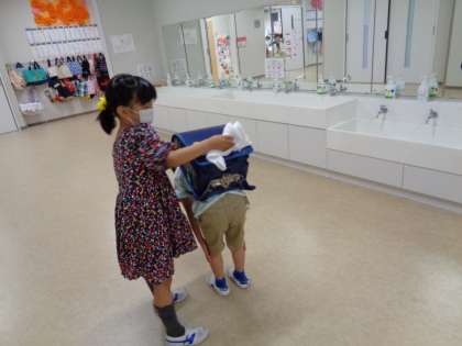 今日は、子供たちがランドセルを拭いてくれました。