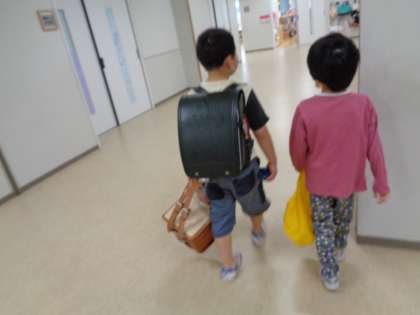 2年生が、疲れてしまった1年生のランドセルを持って一緒に教室まで来てくれました。