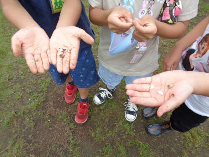正解は・・・貝殻を探しているのでした。小さな貝殻がたくさん見つかりました。