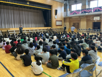 6年生の体育の様子です。ソフトバレーに取り組んでいます。