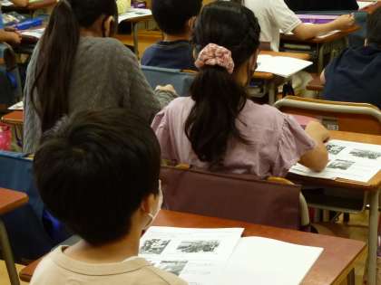 4年生の社会の出前授業です。ちょうど今、「ごみの処理と利用」について学んでいるところです。地域の方に来ていただき、祖師谷においてもごみを減らすために様々な取り組みをしていただいていることが、よく分かりました。