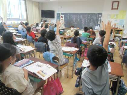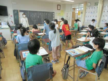 3年生の道徳です。「学級しょうかい」という教材で、学習を進めていました。