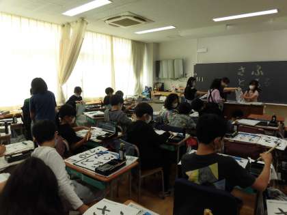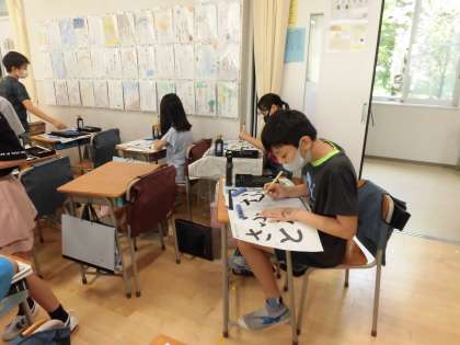 「ふるさと」 ひらがな4文字。筆づかいもまた変わってきます。次に書くところを意識して形を整えて一生懸命書いていました。書き上がったら、先生に見せて沢山ほめてもらっていました。