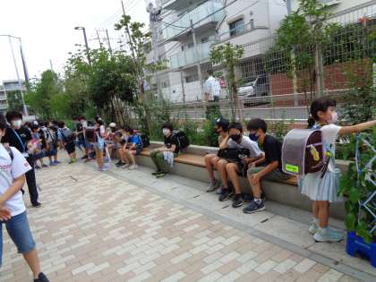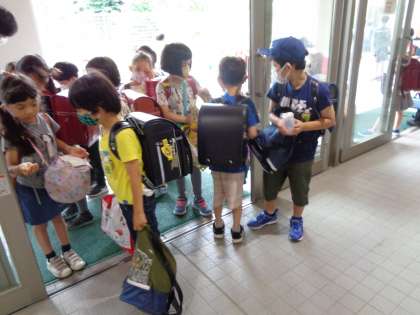 1年生は、空のマヨネーズ容器を手に登校です。