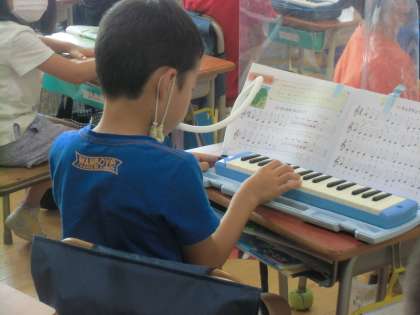 こちらは2年生の音楽です。鍵盤ハーモニカに取り組んでいたクラスが多かったです。
