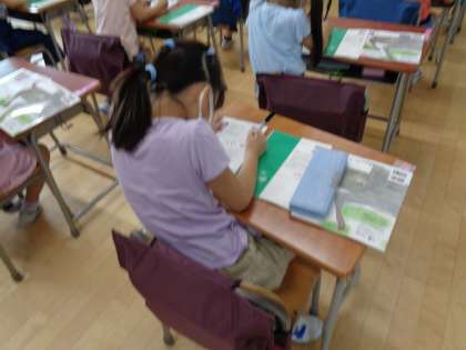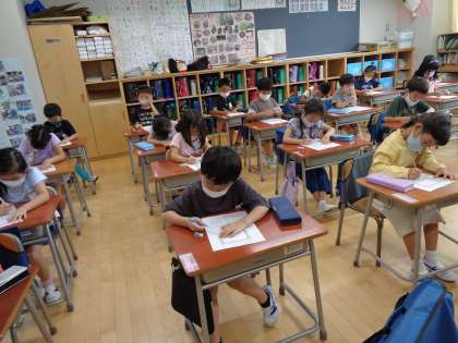 新しい教科書に名前を書いたり、2学期のめあてを書いたりなど、じっくりと集中して取り組んでいました。
