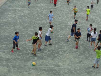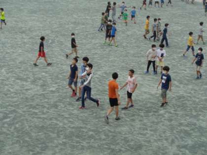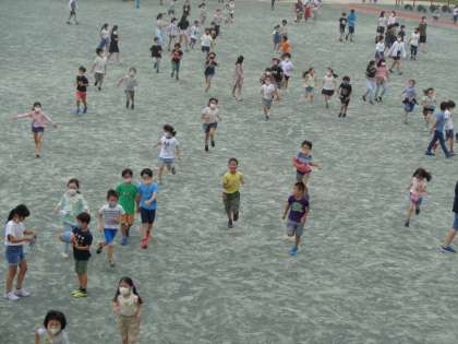 校庭に子どもたちの声が戻ってきました。やっぱり学校には子どもたちがいなくては・・・校庭が喜んでいます!
