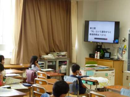 4年生は、テレビで映される都道府県クイズにみんなで取り組みました。