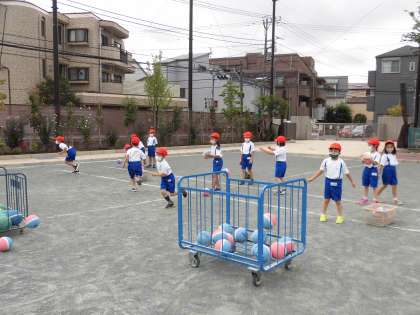 ボールをかごに向かってなげ入れたり、
