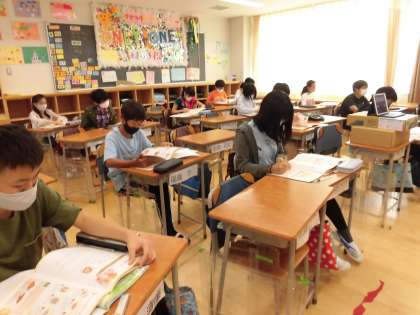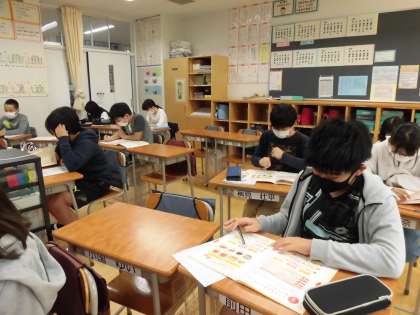 学校で勉強している児童は「保存食のヒミツ」という教材を