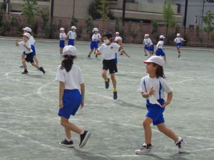 友達と動きを合わせて交流しながら、体を動かす楽しさや心地よさを味わいます。