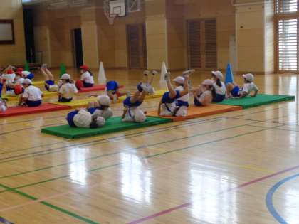 ゆりかごや動物歩きなどいろいろな動きを楽しく取り組みました。