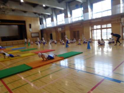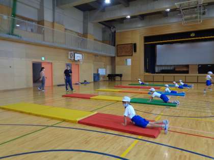 1年生のマットを使った運動遊びの様子です。