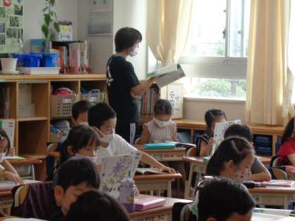 先生がていねいに読み聞かせをしました。子供たちは、しっとりと聞き入り、お話を楽しんでいました。