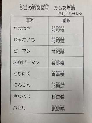 9月15日 今日の給食