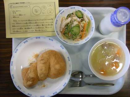 きなこあげパン・牛乳・ウィンナー野菜スープ・春雨サラダ