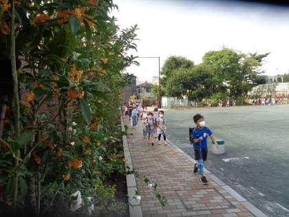 校舎内には主事さんが、キンモクセイやザクロの実を飾ってくれています。