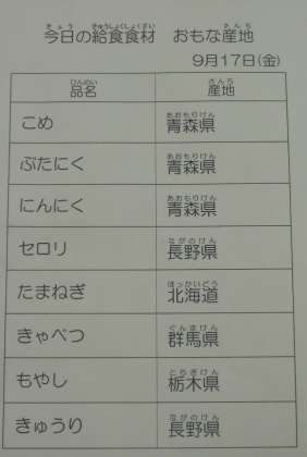 9/17 今日の給食