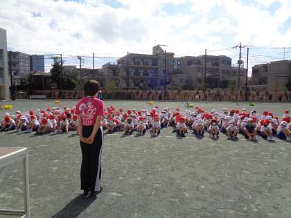 1年生が、校庭でのスポーツフェスタの初めての練習を行いました。