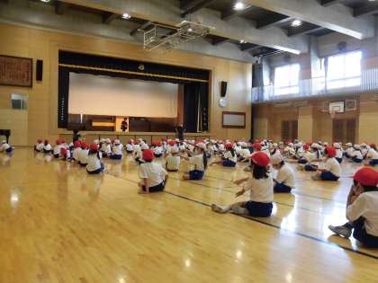 1年生は、体育館で練習をしていました。