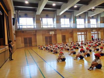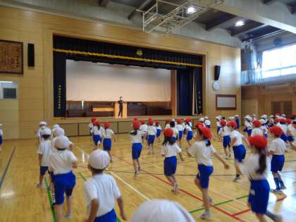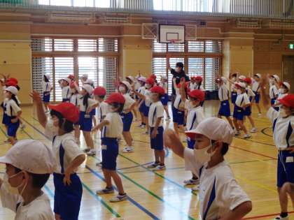 1年生の競技は、「BOMBA玉入れ」です。入場してBOMBAダンスを踊ってから、玉入れをします。