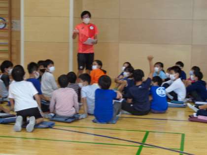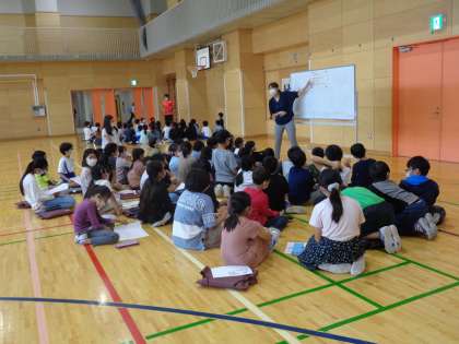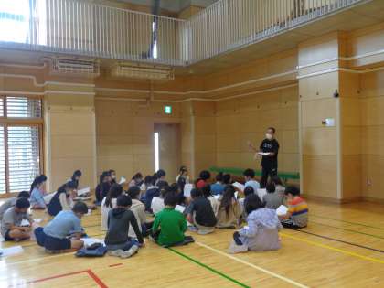 グループに分かれて、先生からどんなことをしていくか話を聞いていました。