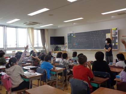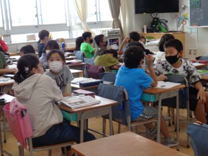 先生が「どうして、水滴がつくのか・・・」と問うと、子供たちは、その現象の理論を好奇心いっぱいに考えていました。近くの人と相談したり、友達の考えを聞いたりしながら、真実にたどり着こうという姿勢がすてきでした。