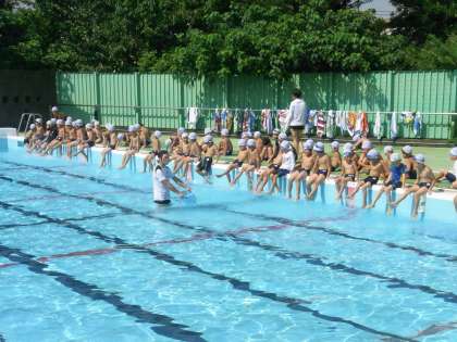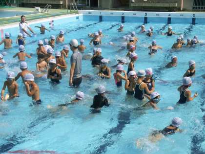 さわやかな太陽の光が降り注ぐ中、1年生は1,2時間目プールに入りました。ここまでの学習の成果を試すとき、そう今日は検定でした。夏休み中一生けん命プールに通ってきた子どもは、自信満々です。目標を達成できた子もいれば、もう少しだった子もいました。終わったら、宝さがしで楽しみました。