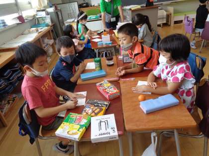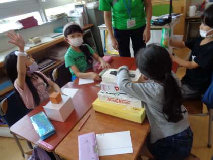 そして、最後は、教科書で確認しました。箱の「かたち」の見方を知り、「なるほど!!」と声があがりました。
