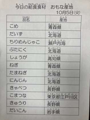 10月5日 今日の給食