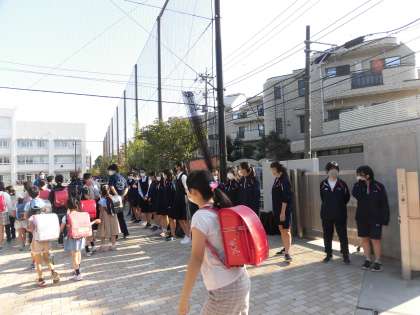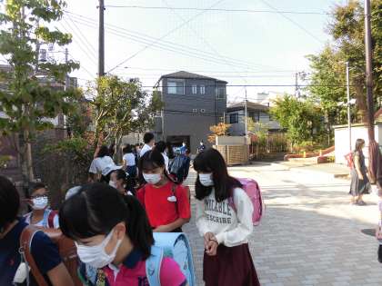 山野小学校に登校する児童に