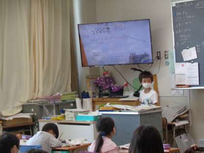 問題をよく読み、お話し通りに図に表します。発表では、自分の図と比べながら、友達の考えを聞きます。図には、自分の考えが表れるので、考え違いも見つかります。